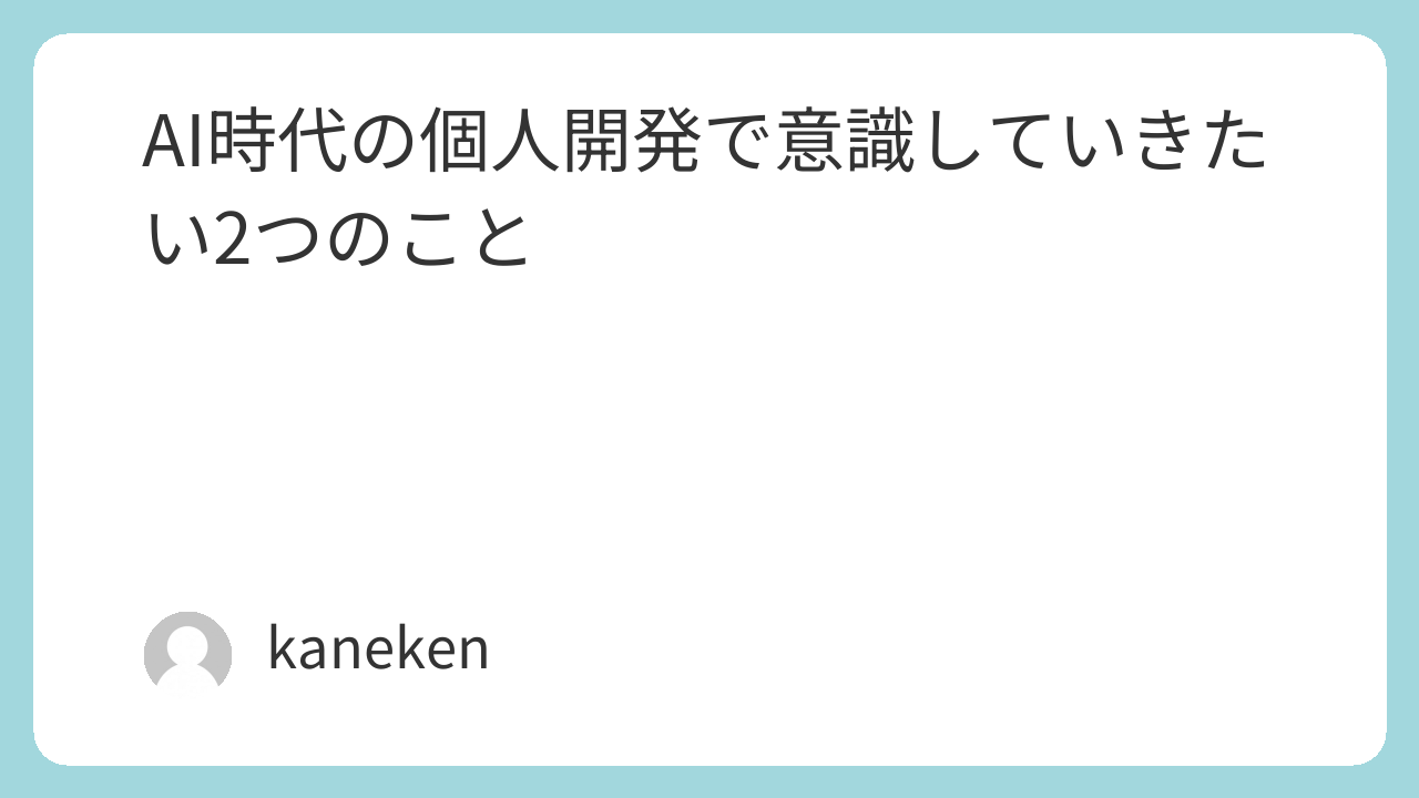 AIで実装が簡単になった今、重要なのは「作る力」ではなく「理解する力」だと思っています。