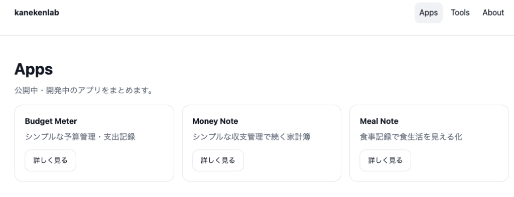 このたび、個人サイト「kanekenlab.com」を公開しました。開発したアプリの紹介やブログなど、活動の拠点となるサイトです。