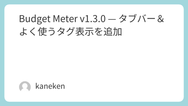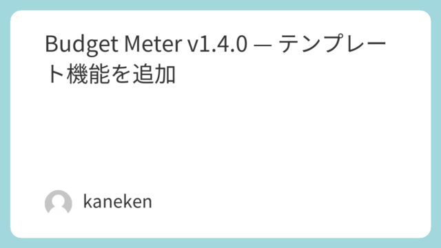 Budget Meter v1.4.0 をリリースしました。よく使う支出をテンプレートとして保存し、ホーム画面からワンタップで入力できるようになりました。