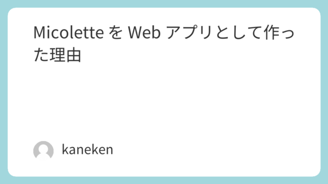 技術記事 Micolette を Web アプリとして作った理由 グループ向け飲食店選びアプリ Micolette をなぜ iOS ではなく Web アプリとして作ったのか、判断の理由を紹介します。 2026.02.14 技術記事